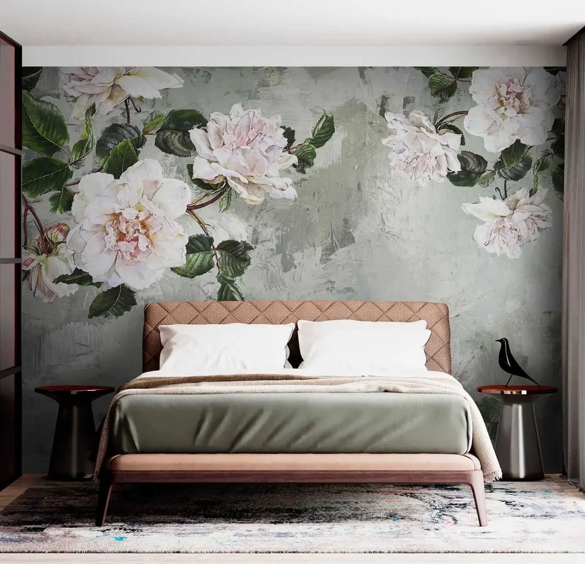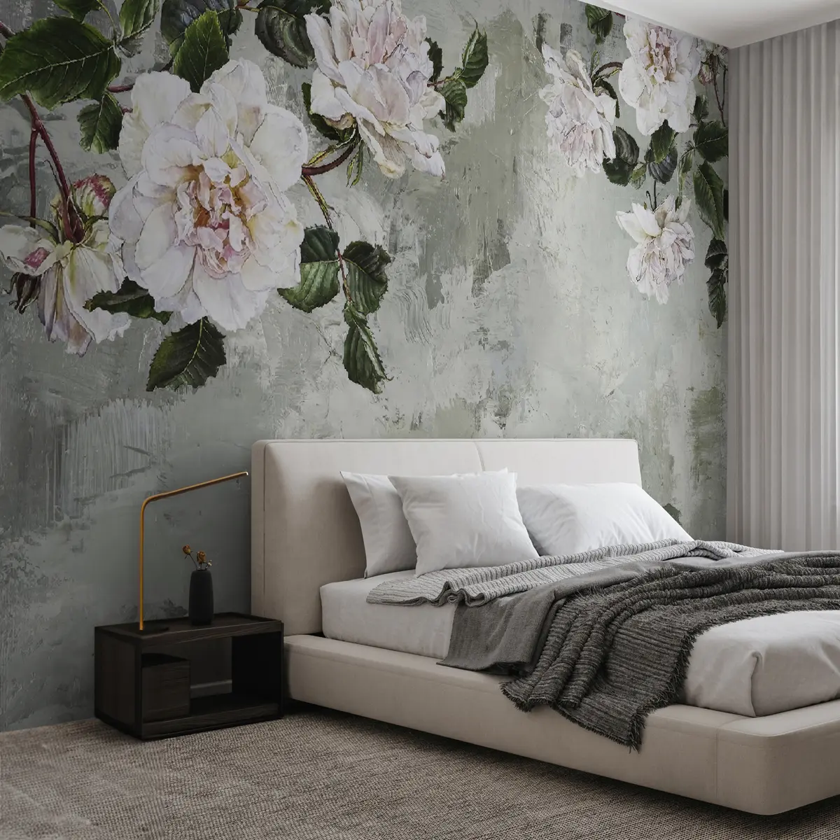Carta da parati Rami in fiore sullo sfondo di un muro squallido nr. u37301
