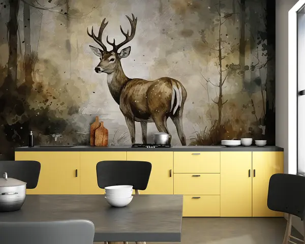 Carta da parati Cervi disegnati a mano nella foresta nr. u95410