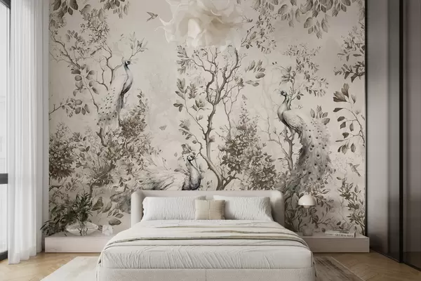 Carta da parati Un giardino con uccelli fragili, pavoni nr. u94850