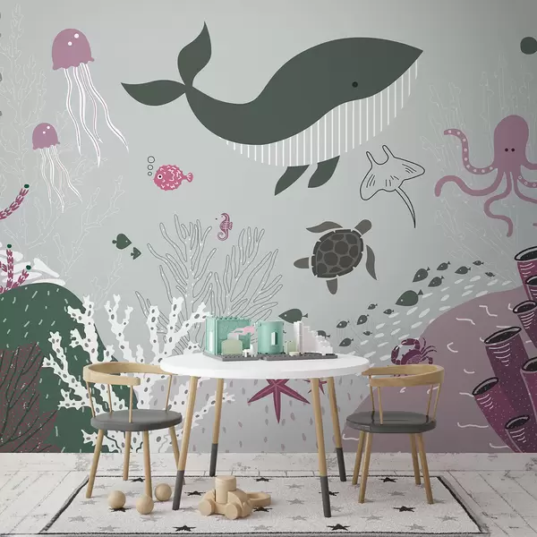 Carta da parati Mondo sommerso nei colori nero e viola nr. u93763v2