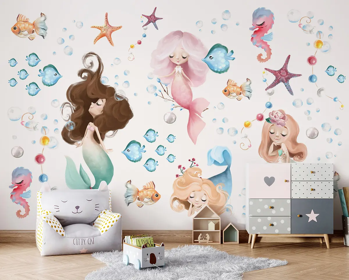 Carta da parati Sirene e pesci dell'acquerello nr. u96868