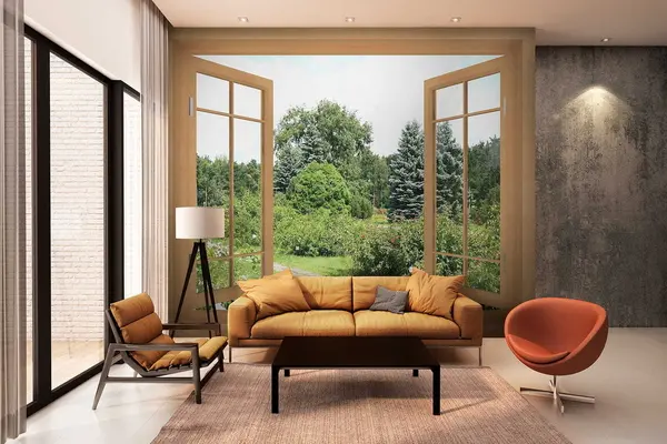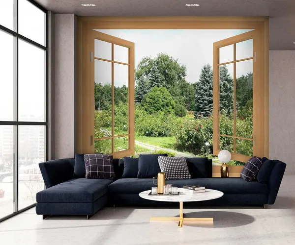 Carta da parati Vista dalla finestra sulla foresta nr. u60673