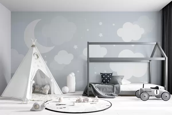 Carta da parati Carta da parati carina con nuvole, stelle e luna su sfondo blu nr. u97510