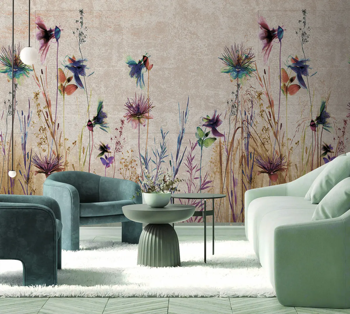 Carta da parati Fiori alti insoliti su uno sfondo beige nr. u93672