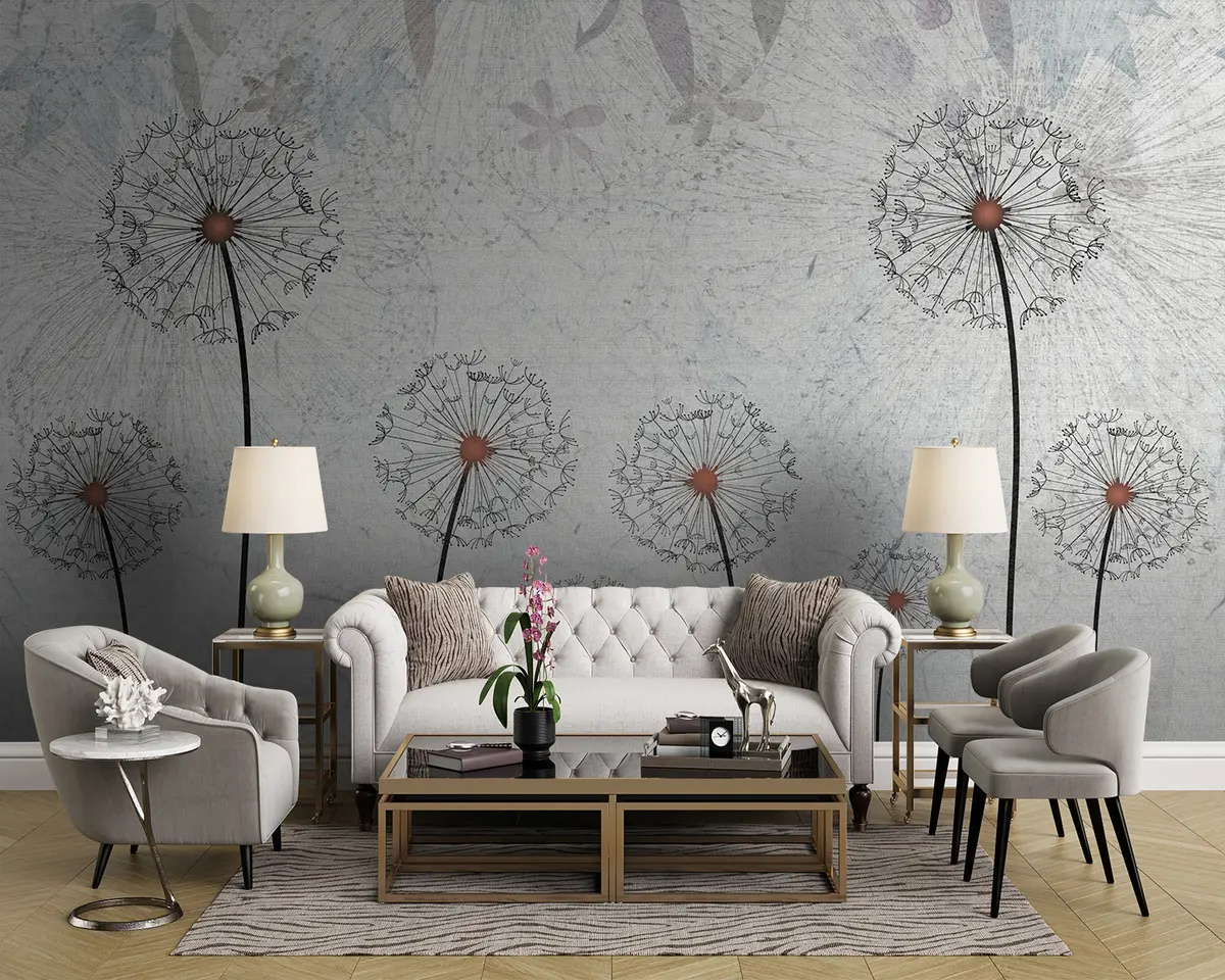 Carta da parati Dentelioni su uno sfondo grigio chiaro nr. u93968