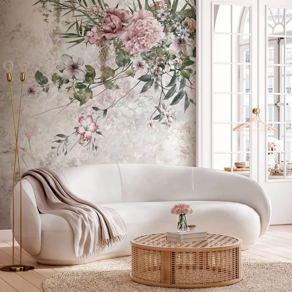 Carta da parati Fiori vintage sulla parete di marmo nr. u97046