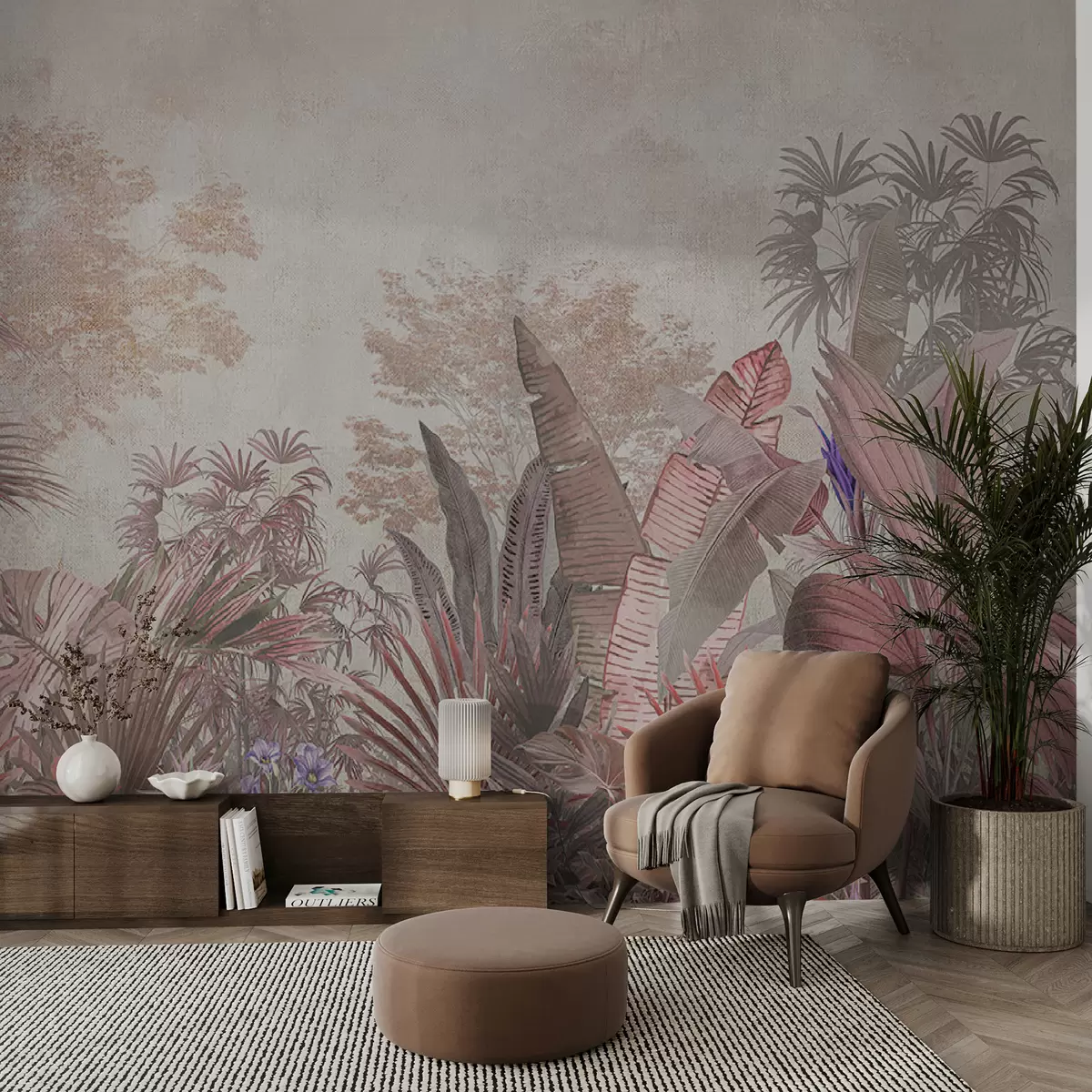 Carta da parati Illustrazione da carta da parati tropicale vintage con foglie di palma esotiche nr. u97104