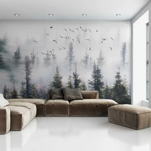 carta da parati Foresta di nebbia e uccelli nr. u32237