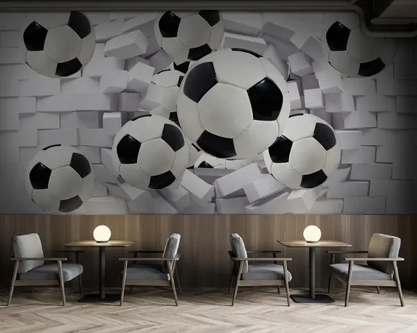 Carta da parati Palloni da calcio sullo sfondo di un muro di mattoni nr. u94958