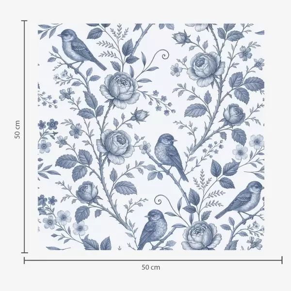 Carta da parati Uccelli e rose blu su fondo bianco Nr. a00873