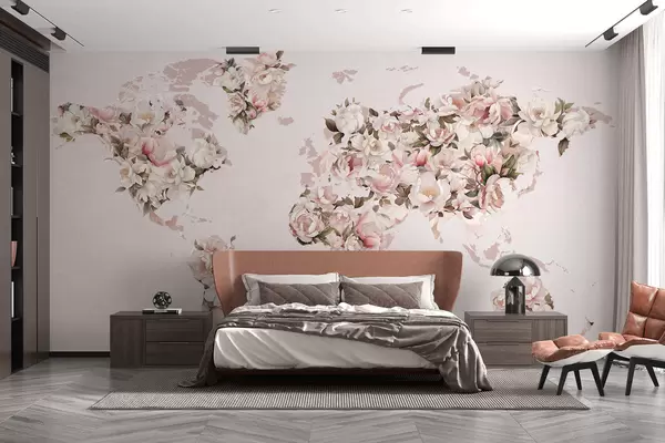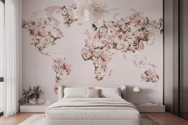 Carta da parati Una mappa del mondo rosa composta da grandi peonie bianche e rosa nr. c00005