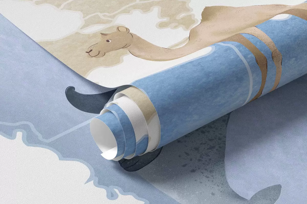 Carta da parati Una mappa blu in stile acquerello con animali. Etichette in francese nr. c00012frv1