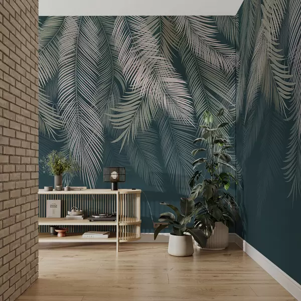 Carta da parati Foglie di palma su sfondo verde scuro nr. u48556v2d2