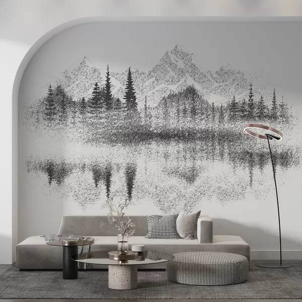 Carta da parati La foresta e le montagne si riflettono nel lago nr. u98808