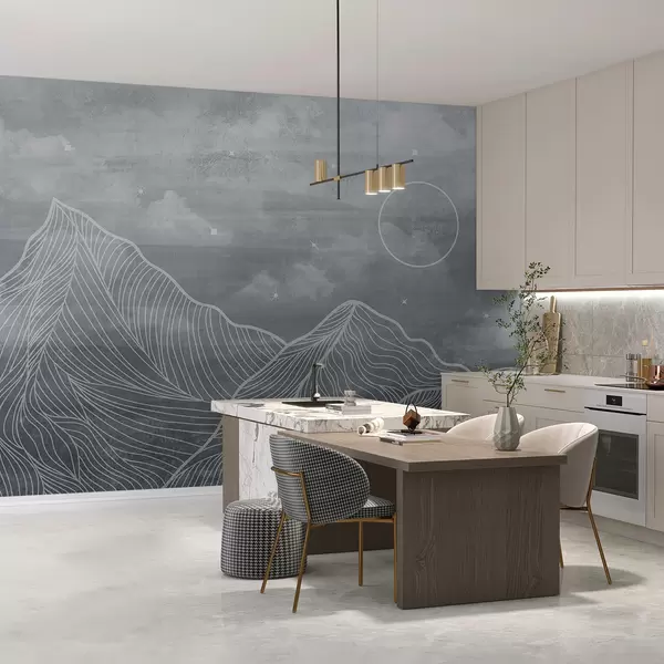 Carta da parati Texture grunge con nuvole e montagne, colore grigio, tema natura, arte nr. u98838v1