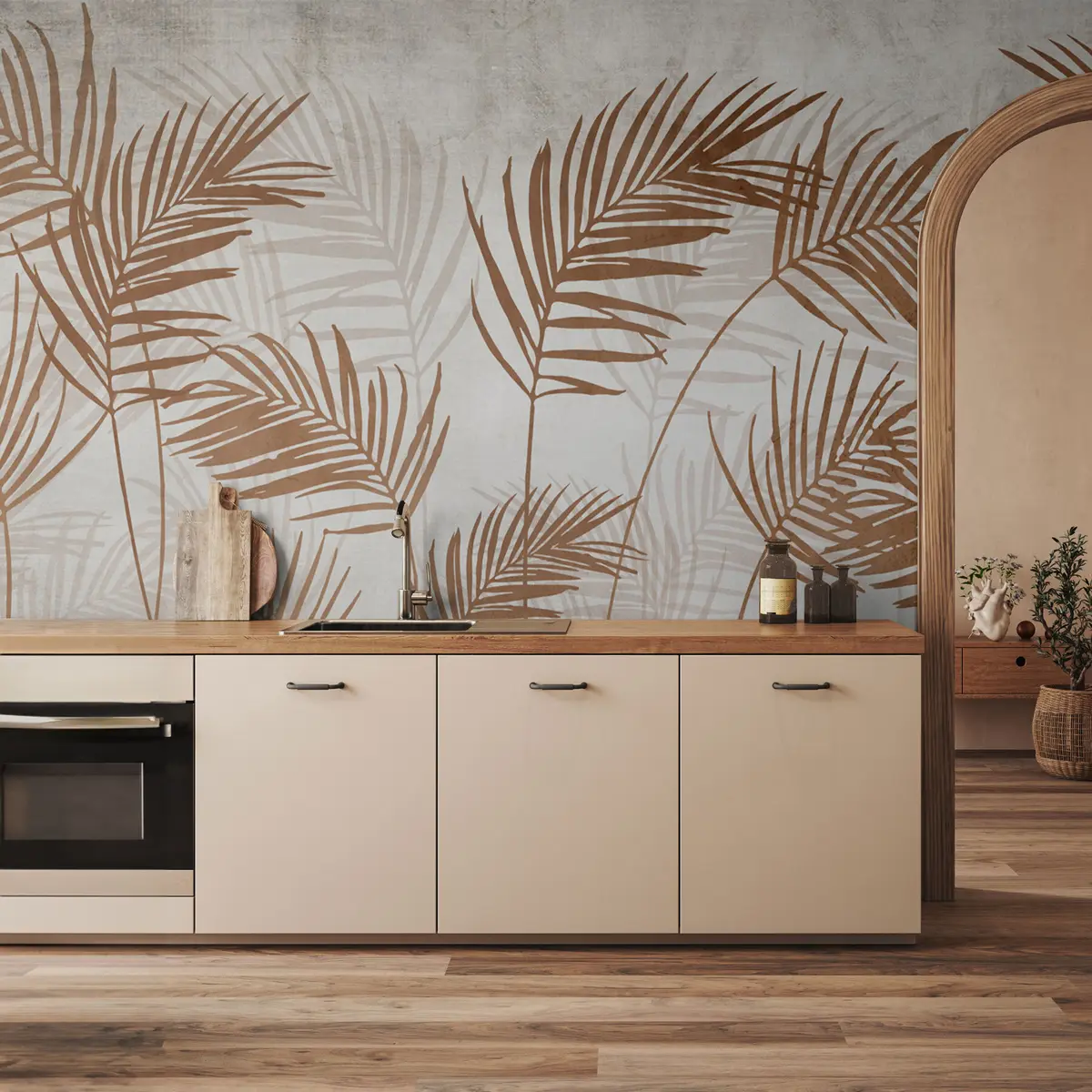 Carta da parati Carta da parati con alberi tropicali e foglie nella foresta nebbiosa nr. u98974