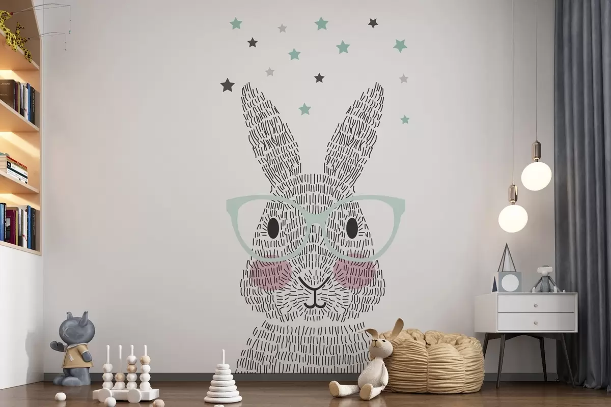 Carta da parati Coniglietto intelligente con occhiali alla moda nr. w00159