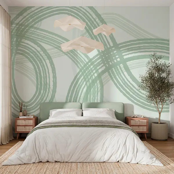 Carta da parati Linee astratte stile boho colore verde nr. w00417v2