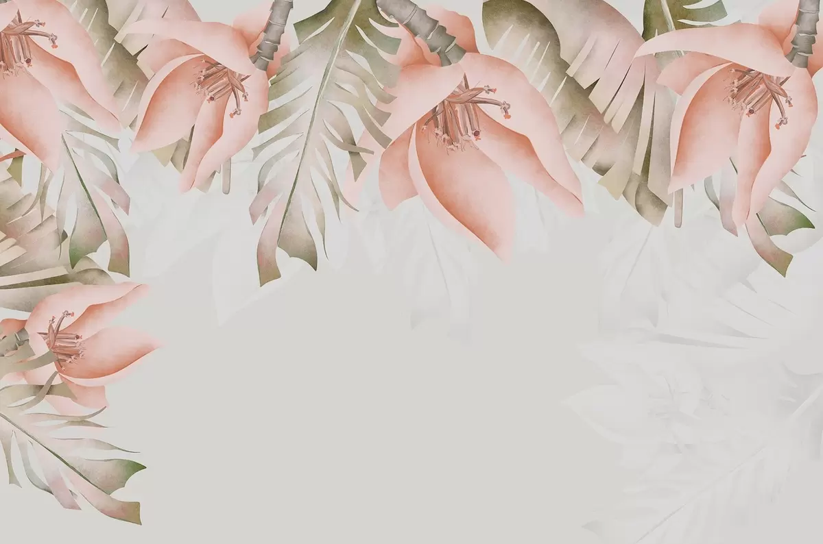 Carta da parati Delicate fioriture in mezzo alle foglie verdi nr. w00478