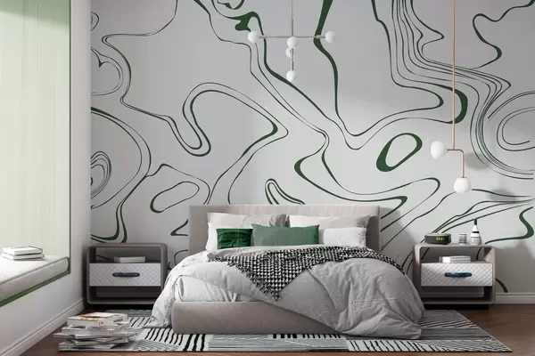 Carta da parati Linee fluide in verde e bianco nr. w00634v3