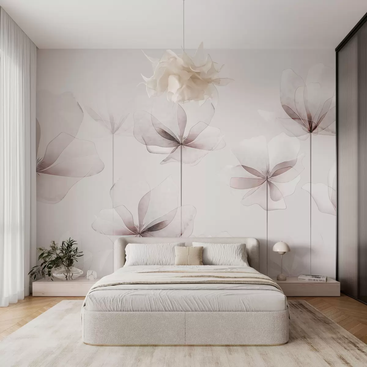 Carta da parati Delicati fiori trasparenti tendenza in stile moderno art deco 3D nr. w00895