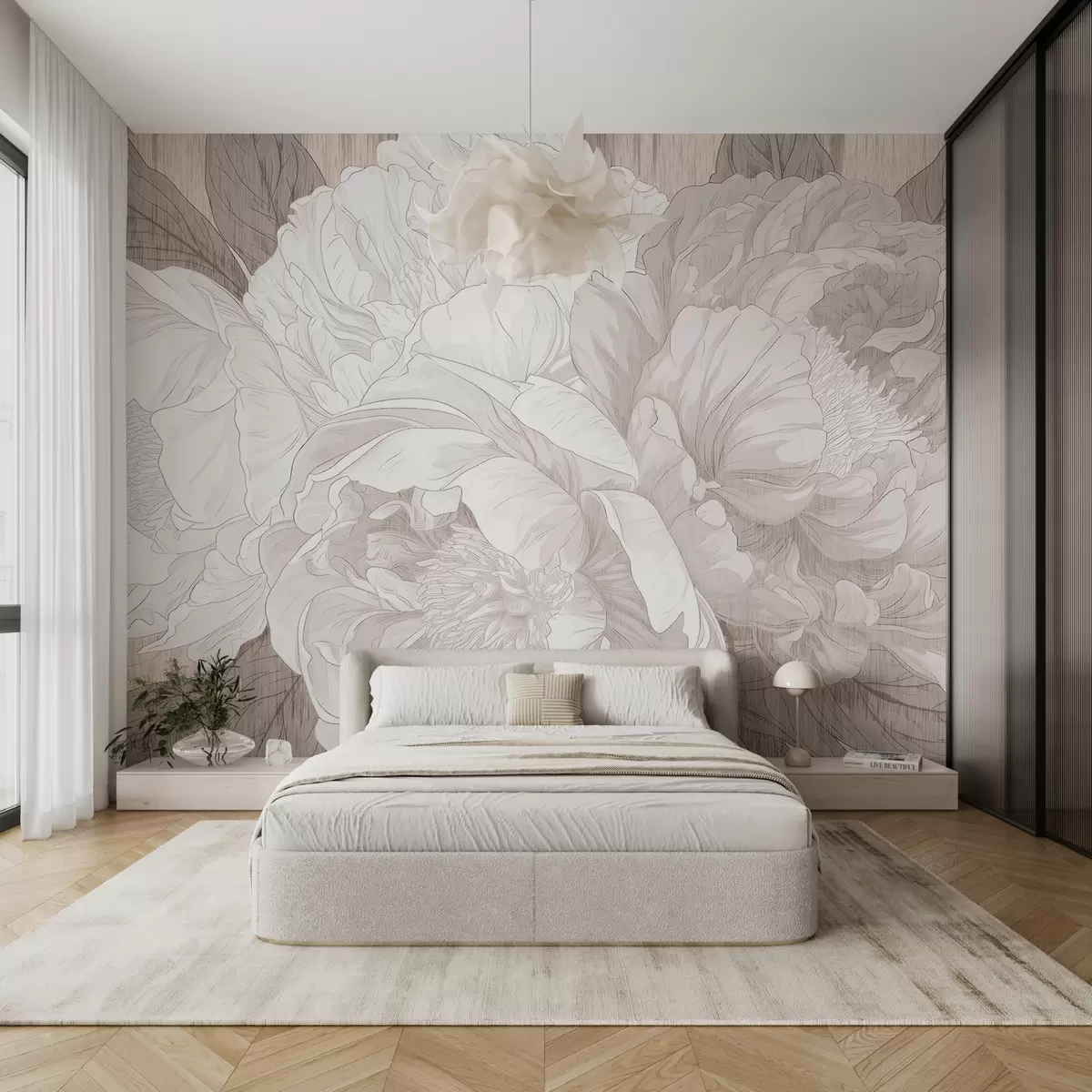 Carta da parati Fiori di peonia grandi e strutturati nei toni del beige nr. w01141