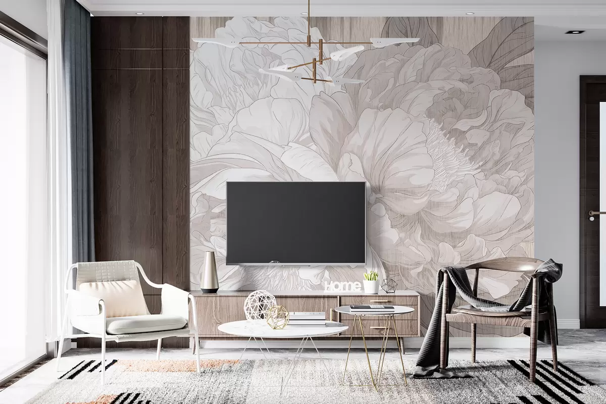 Carta da parati Fiori di peonia grandi e strutturati nei toni del beige nr. w01141