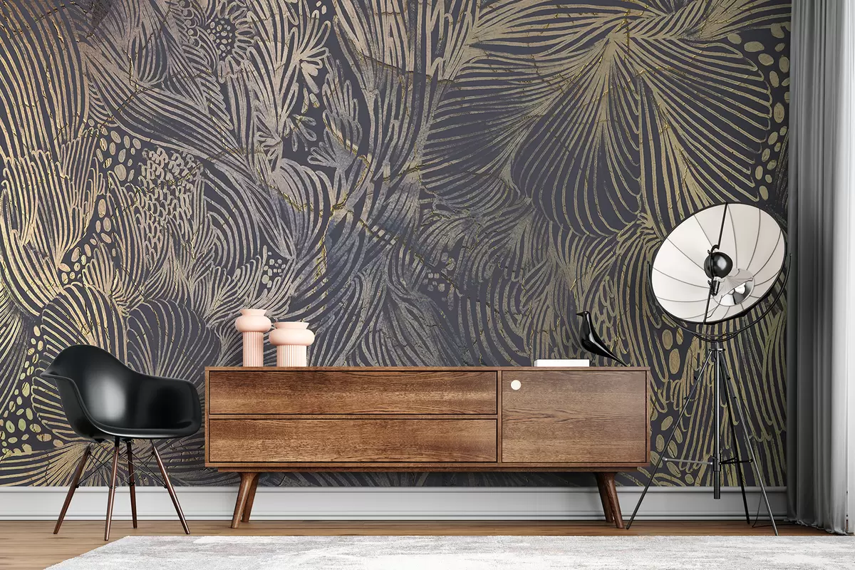 Carta da parati Stampa astratta di lusso con forme e linee organiche sovrapposte nr. w01243