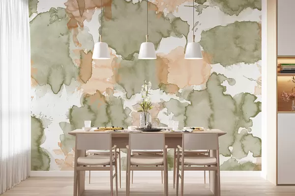 Carta da parati Astrazione dell'acquerello, disegno di motivi, colori naturali verde e beige nr. w01284v1