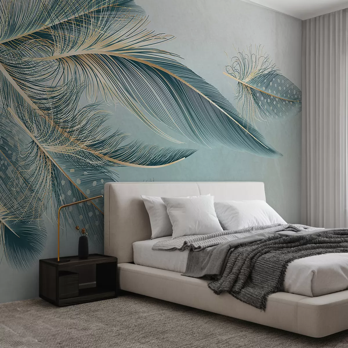 Carta da parati Delicate piume nei toni del blu nr. w01312