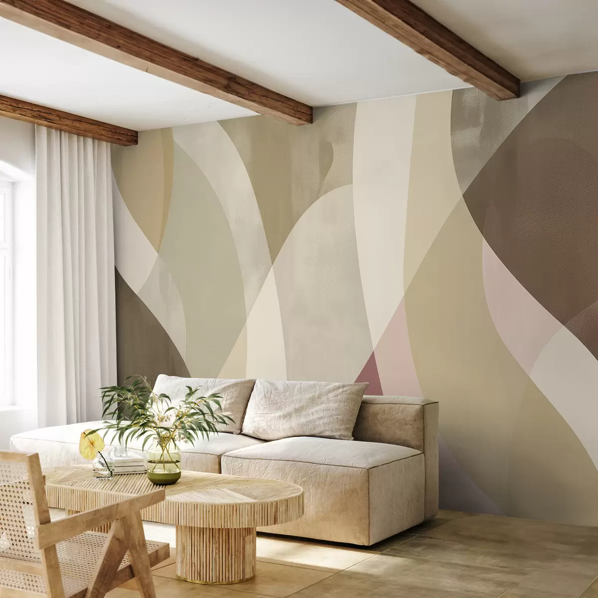 Carta da parati Curve morbide in toni tenui con linee fluide e sfumature beige, minimaliste e moderne nr. w01334v1