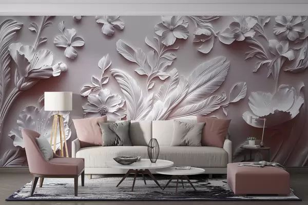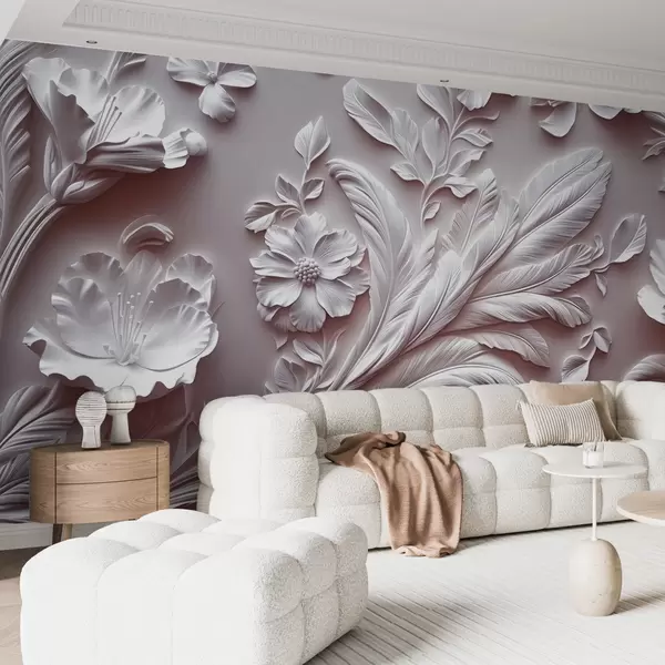 Carta da parati Squisiti fiori e foglie in rilievo nei toni del rosa nr. w01356v1