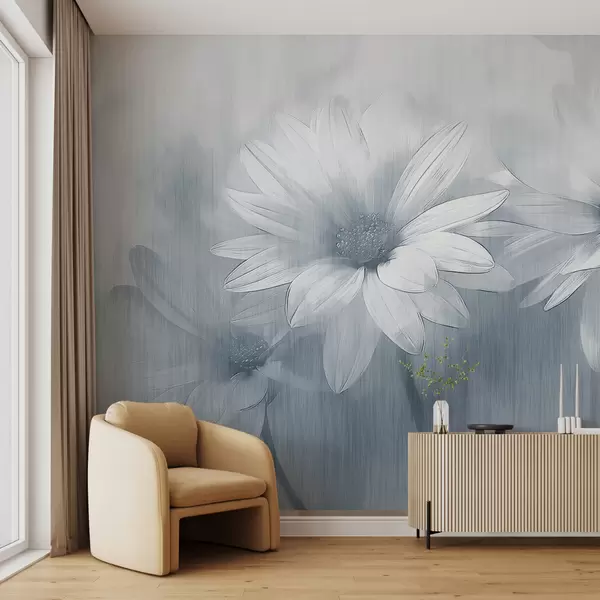 Carta da parati grandi fiori su una parete strutturata di colore blu nr. w01374v1