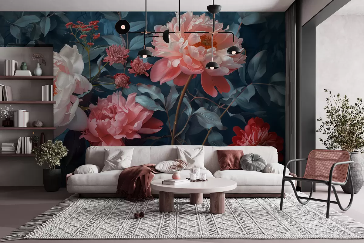 Carta da parati Fiori di peonia di mezzanotte nr. w01392