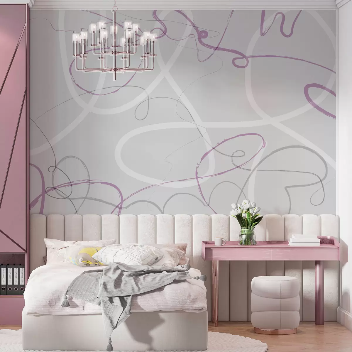 Carta da parati Linee viola astratte su sfondo grigio nr. w01455v2