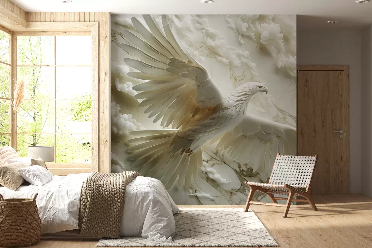 Carta da parati Aquila bianca 3D su uno sfondo di nuvole e marmo nr. w01477