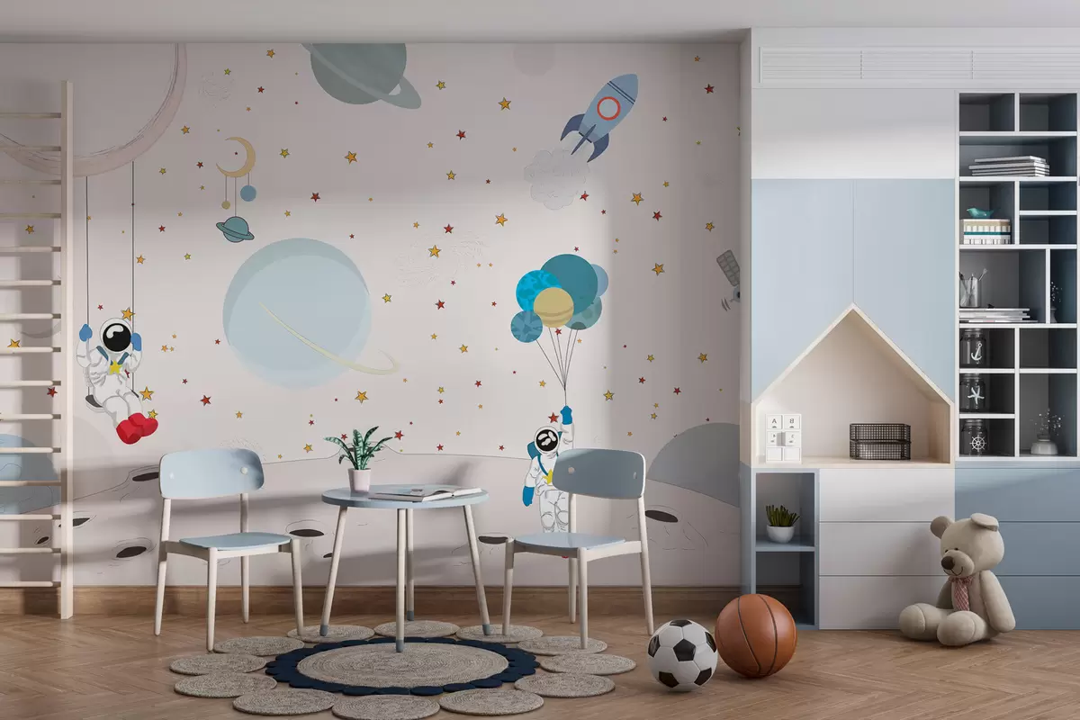 Carta da parati Progettazione spaziale con astronauti, pianeti, razzi e stelle nr. w01489