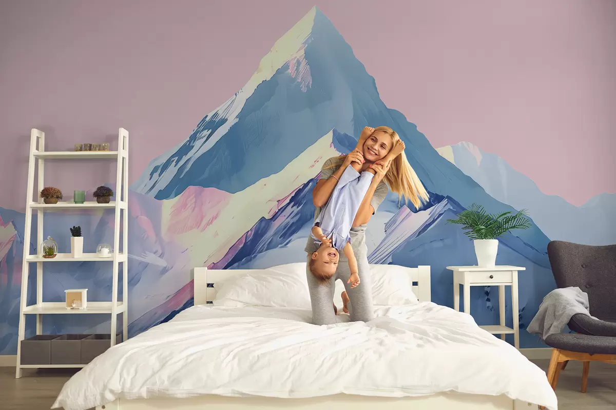 Carta da parati Montagne blu e rosa in stile disegnato nr. w01497