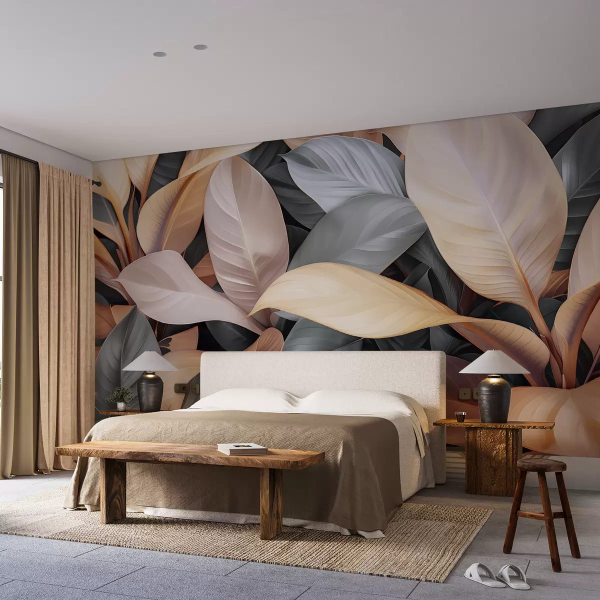Carta da parati Grandi foglie tropicali nei colori blu e beige nr. w01587v2