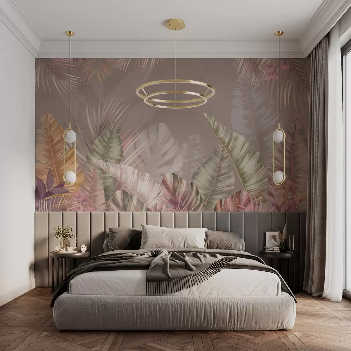 Carta da parati Foglie tropicali in delicate tonalità pastello nr. w01684