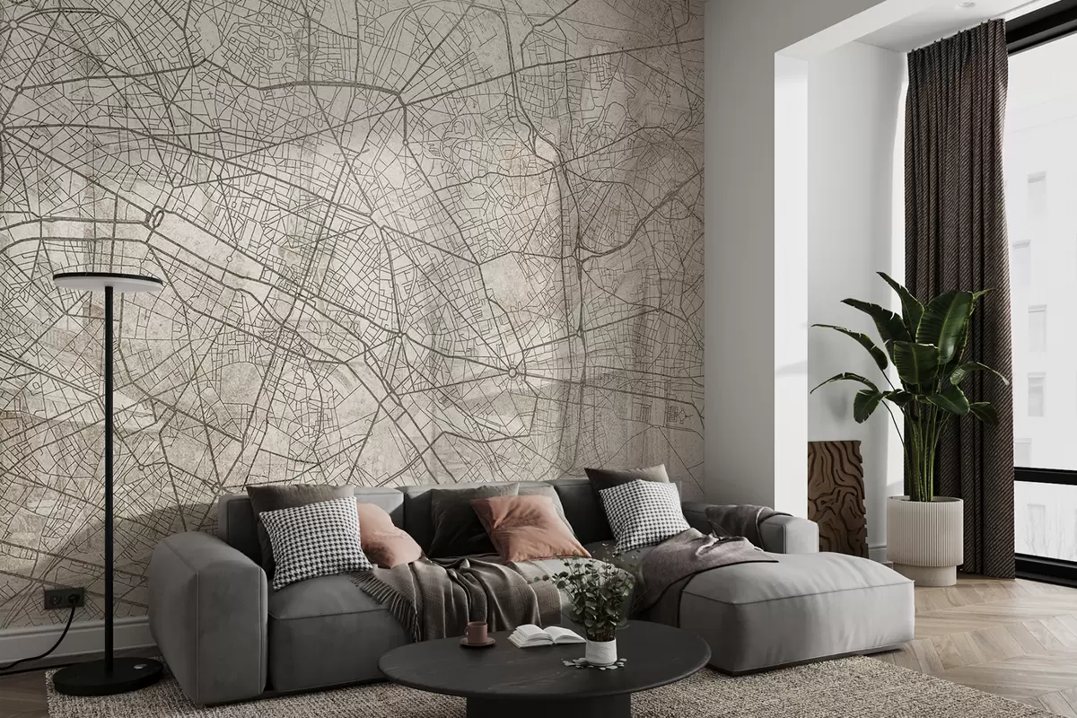 Carta da parati Mappa della città di Parigi, disegno al tratto, architettura, Francia, colori beige nr. w01697