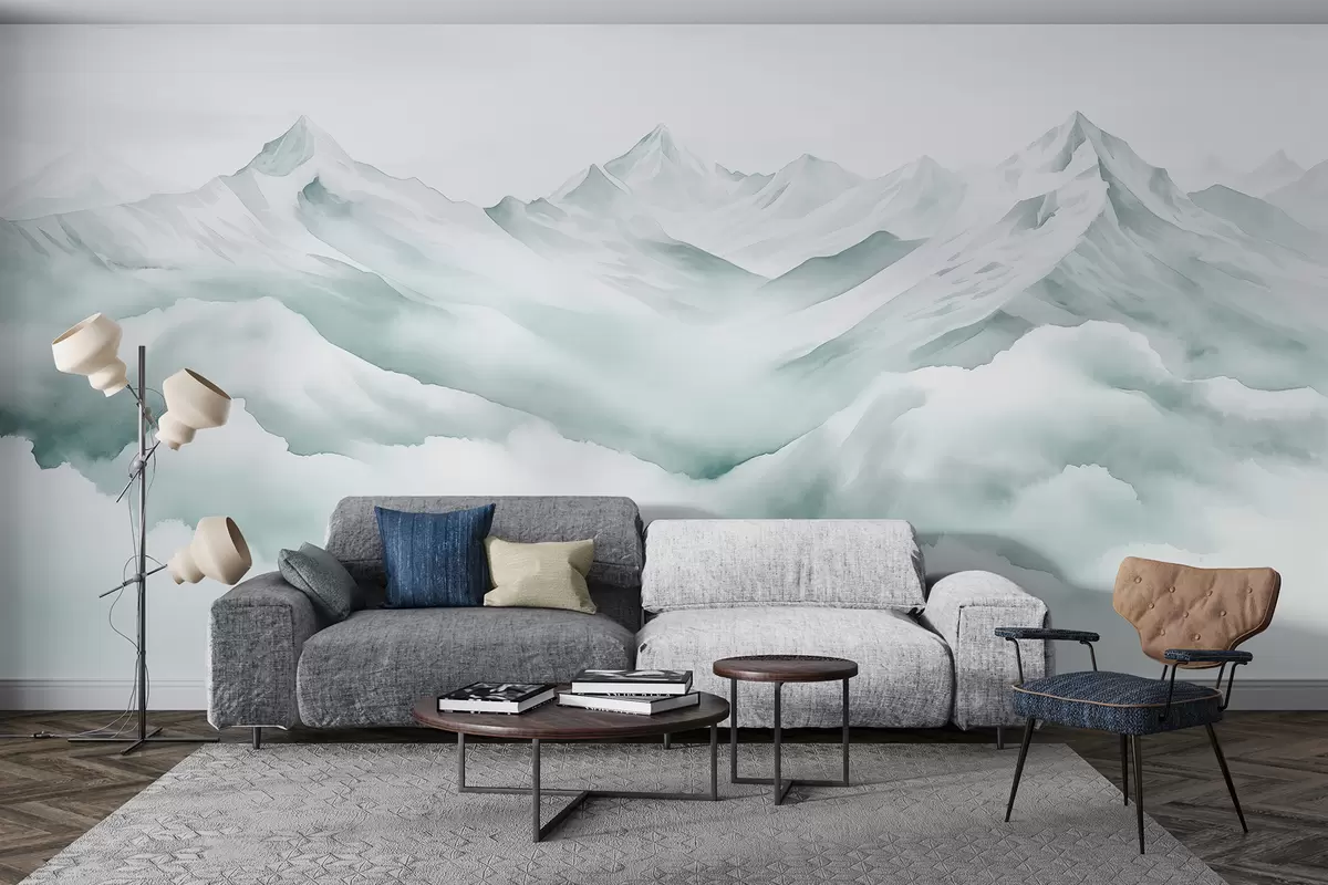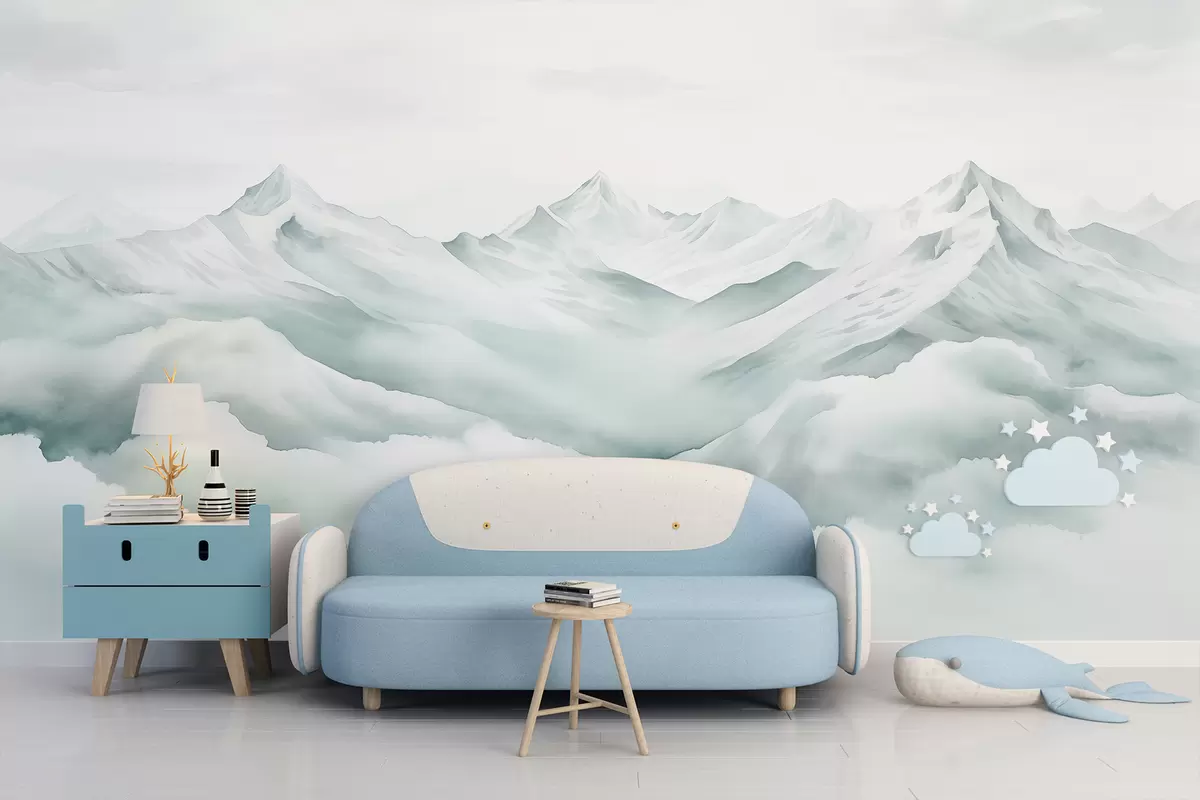 Carta da parati Paesaggio di montagna, acquerello, colori blu tenui nr. w01787v2