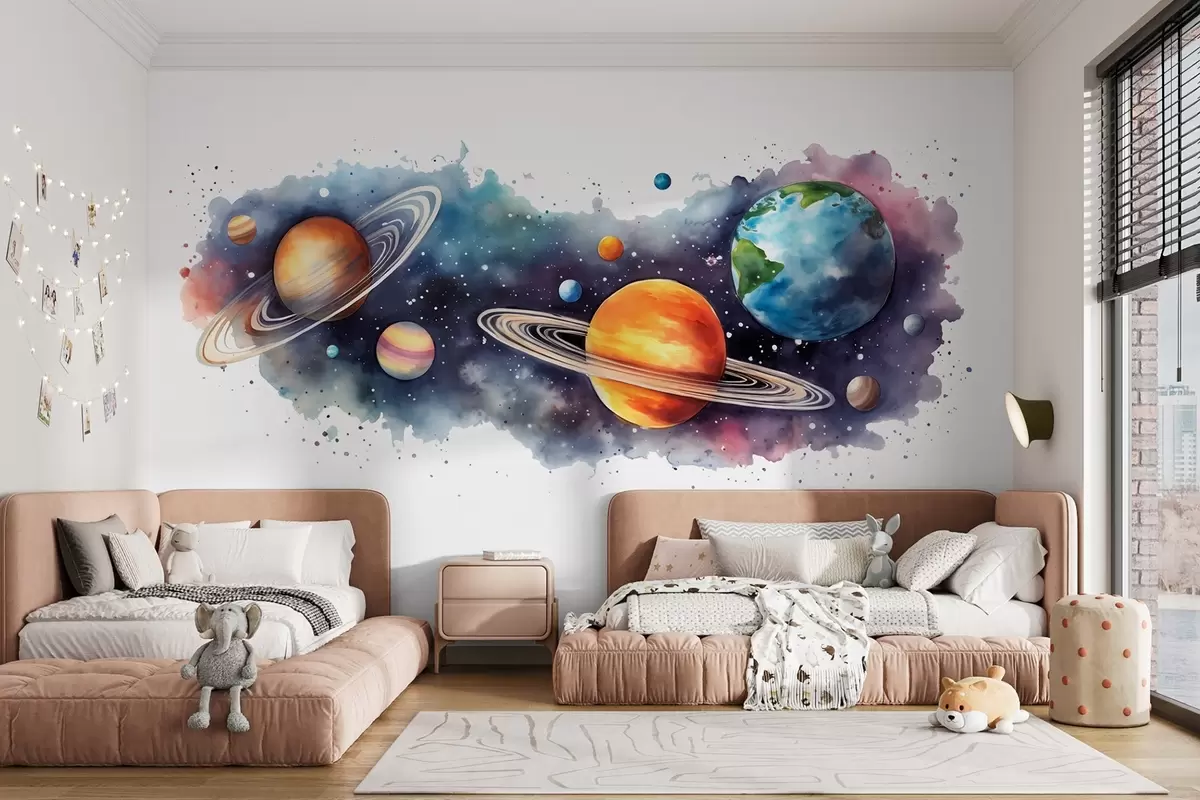 Carta da parati Pianeti ad acquerello, spazio, cosmico, Terra, Saturno nr. w01802