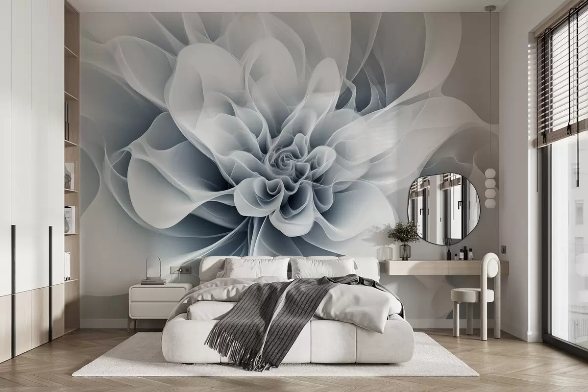 Carta da parati Elegante immagine astratta di un fiore con linee morbide in blu nr. w01853