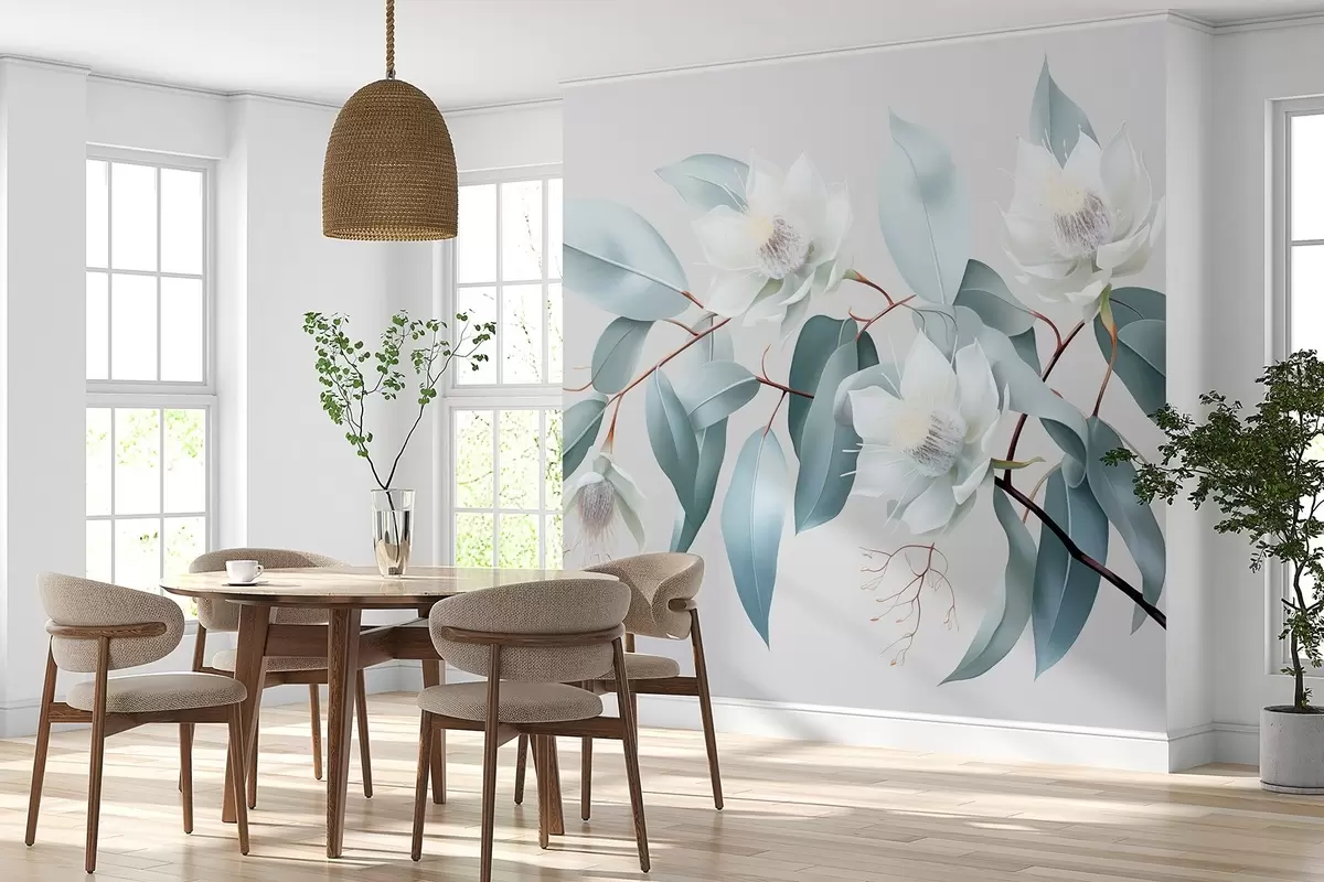 Carta da parati Fiori di gelsomino sul ramo, acrilico, colori grigi tenui nr. w01885