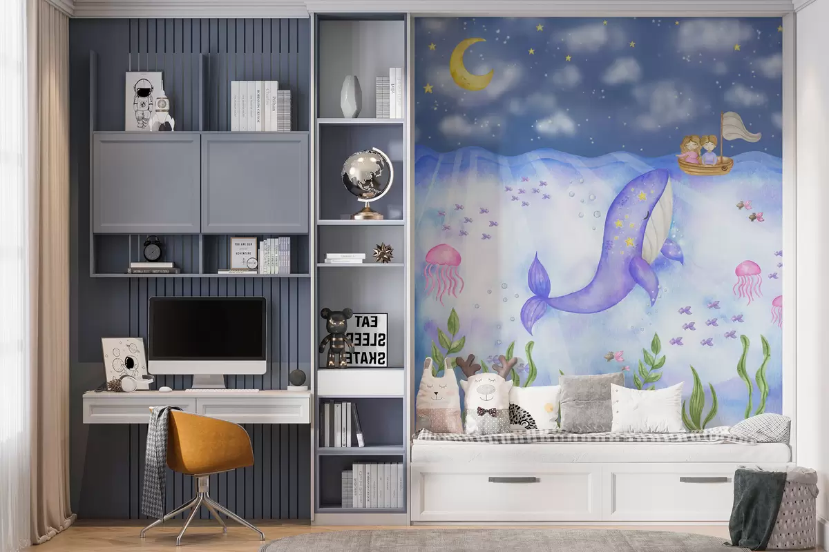 Carta da parati Una balena nuota sotto un cielo stellato nr. w01965