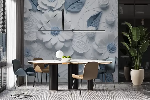 Carta da parati Fiori volumetrici in gesso in due colori nr. w02006v1