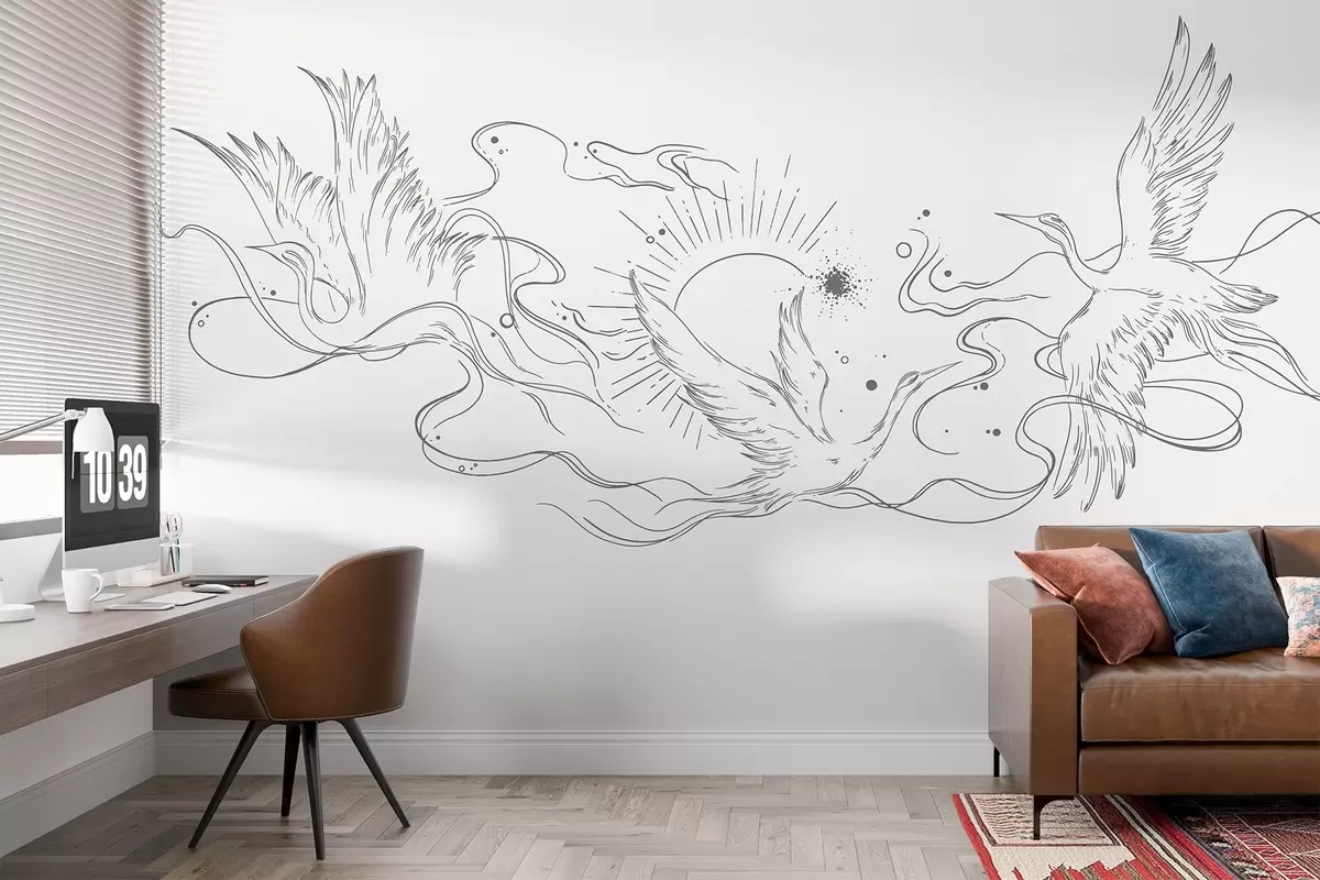 Carta da parati Uccelli volanti, disegno al tratto, minimalismo, tavolozza di colori grigi nr. w02022v2