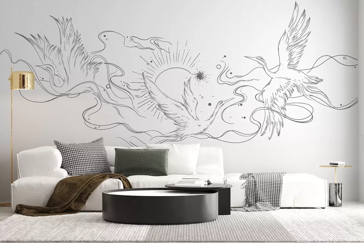 Carta da parati Uccelli volanti, disegno al tratto, minimalismo, tavolozza di colori grigi nr. w02022v2