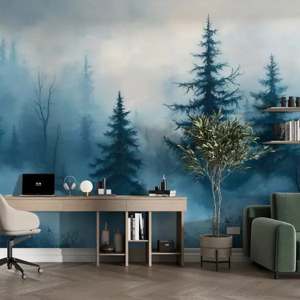 Carta da parati Foresta blu scuro, pittura a olio, pennellate, natura nr. w02153